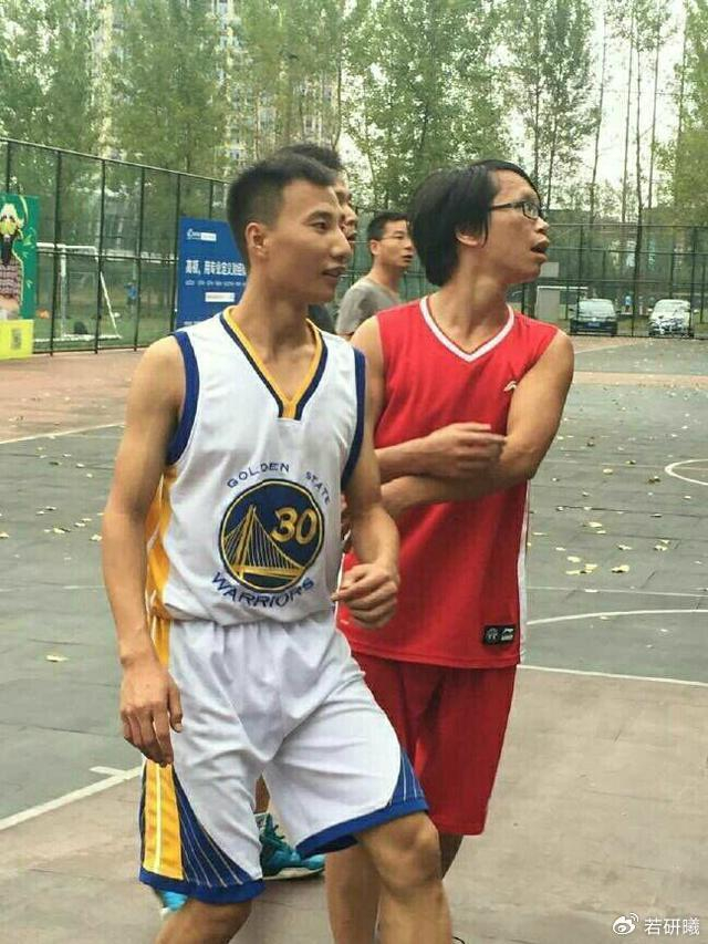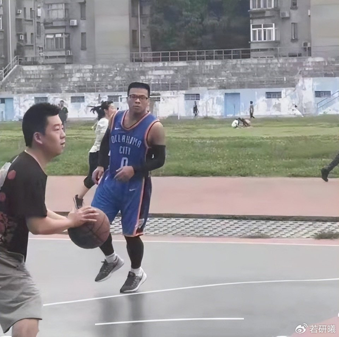而威少也遇到了自己的“翻版”,虽然对方戴着眼镜,但五官和脸型与威少几乎一模一样,再加上同款球衣,远远望去,还真会让人误以为是威少本尊来到了野球场。