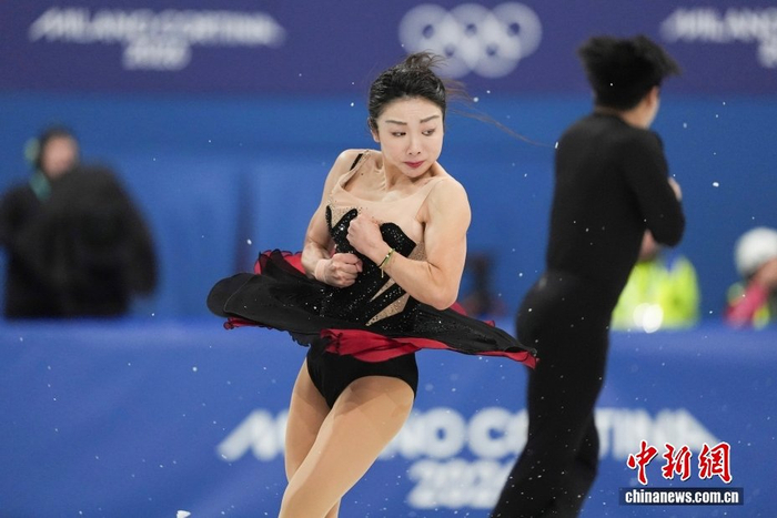 当地时间2月6日,米兰冬奥会花样滑冰团体赛在米兰滑冰馆开赛,双人滑短节目比赛中,北京冬奥会冠军、中国组合隋文静/韩聪第一顺位出场,获得65.37分。图为隋文静在比赛中失误。中新社记者 蒋启明 摄