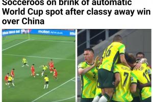 澳媒写道:澳大利亚2-0击败中国队后,实际上只需要再拿到一场胜利即可获得世界杯参赛资格。目前世预赛仅剩最后2轮,澳大利亚领先沙特3分。