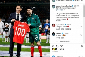此役是B席为葡萄牙队出战的第100场比赛,因此获赠纪念球衣。他在社交媒体上晒出照片,并写道:“为葡萄牙国家队出战100场比赛,我感到非常自豪和高兴!我们进入了四强,感谢所有葡萄牙球迷在两回合比赛中的支持。”