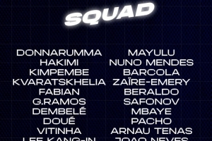 前锋:克瓦拉茨赫利亚、贡萨洛-拉莫斯、登贝莱、杜埃、巴尔科拉、姆巴耶